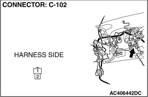 STEP 3. Check air thermo sensor connector C-102 for loose, corroded or damaged terminals, or terminals pushed back in the connector.