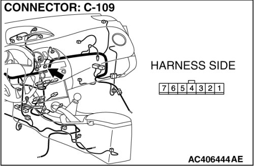 STEP 3. Check air mixing damper control motor and potentiometer connector C-109 for loose, corroded or damaged terminals, or terminals pushed back in the connector.