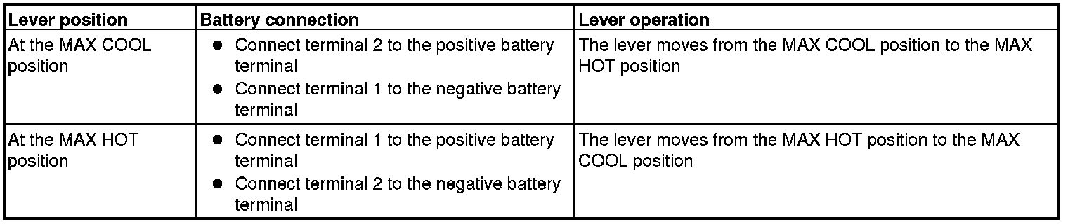 Operate the air mixing damper control motor as described in the table below.