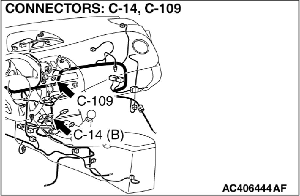 STEP 5. Check A/C-ECU connector C-14 for loose, corroded or damaged terminals, or terminals pushed back in the connector.