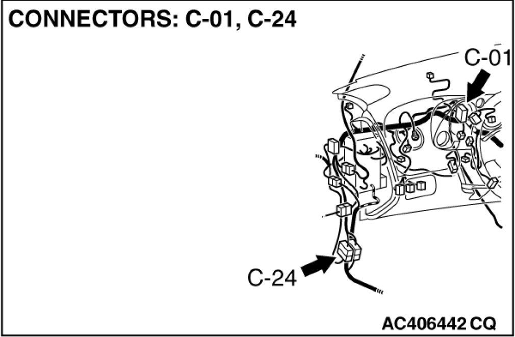 Also check joint connector C-01 for loose, corroded, or damaged terminals, or terminals pushed back in the connector. If joint connector C-01 is damaged, repair or replace the connector as described in Harness Connector Inspection Harness Connector Inspection.