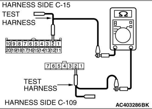 STEP 17. Check the wiring harness between A/C-ECU connector C-15 (terminal 20) and air mixing damper control motor and potentiometer connector C-109 (terminal 7).