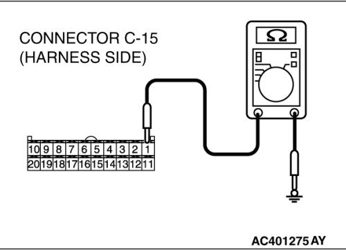 STEP 8. Measure the resistance at A/C-ECU connector C-15.