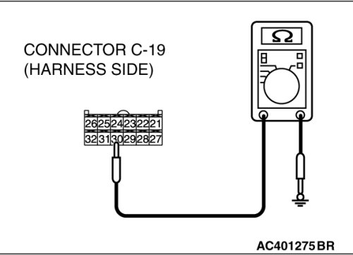 STEP 9. Measure the resistance at A/C-ECU connector C-19.