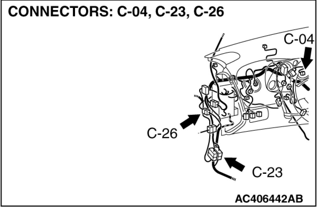 Also check intermediate connector C-23 for loose, corroded, or damaged terminals, or terminals pushed back in the connector. If intermediate connector C-23 is damaged, repair or replace the damaged component(s) as described in Harness Connector Inspection Harness Connector Inspection.
