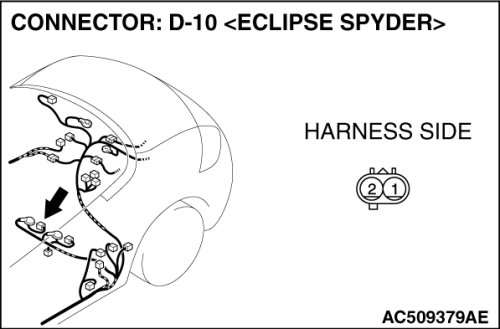 STEP 3. Check fuel level sensor (sub) connector D-10 for loose, corroded or damaged terminals, or terminals pushed back in the connector.