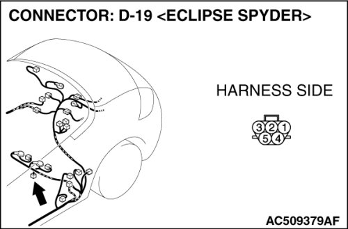 STEP 5. Check fuel pump module connector D-19 for loose, corroded or damaged terminals, or terminals pushed back in the connector.