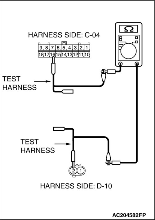 STEP 11. Check the wiring harness between combination meter connector C-04 (terminal 16) and fuel level sensor (sub) connector D-10 (terminal 2).