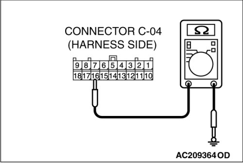 STEP 12. Check the ground circuit to the combination meter. Measure the resistance at combination meter connector C-04.