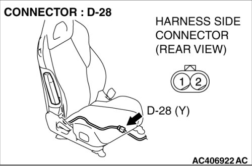 - SRS-ECU connector C-124 (terminal No.58) and the side-airbag module (RH) connector D-28 (terminal No.1)