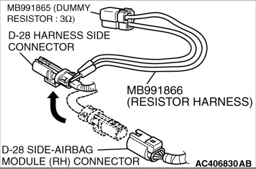 Insert special tool MB991866 into the D-28 harness side connector by backprobing.