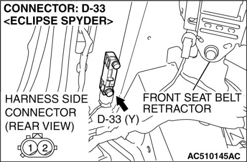 STEP 4. Check the harness wires for open circuit or short circuit between SRS-ECU connector C-124 (terminal No.63 and 64) and side impact sensor (RH) connector D-33 (terminal No.1 and 2).