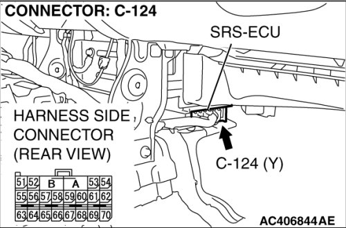 - SRS-ECU connector C-124 (terminal No.62) and the special tool (terminal No.1)