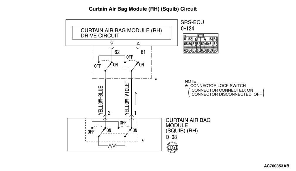 DTC B1441: Curtain Air Bag Module (RH) (Squib) System Fault 2 (Open in the Squib Circuit) [ECLIPSE]