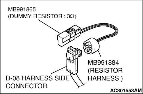 (4)Connect special tool MB991884 to the D-08 harness side connector.