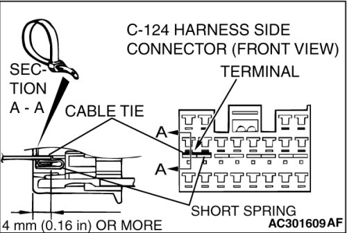 - SRS-ECU connector C-124 (terminal No.61) and the special tool (terminal No.2)