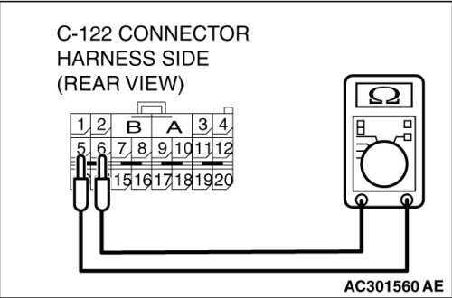 Check for continuity between C-122 harness side connector terminals 5 and 6.