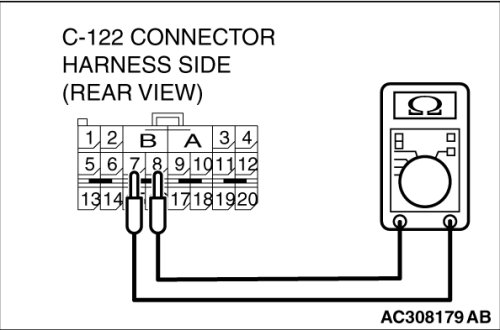 Check for continuity between C-122 harness side connector terminals 7 and 8.