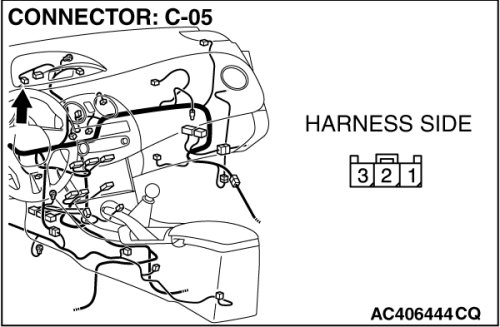 STEP 5. Check the harness between SRS-ECU connector C-123 (terminal No.21) and passenger air bag OFF indicator light C-05 (terminal No.3).