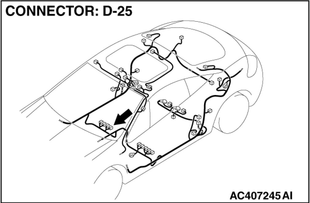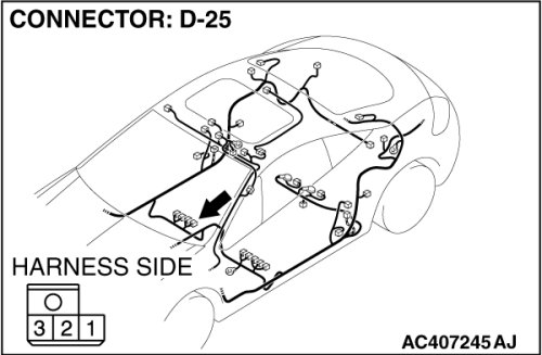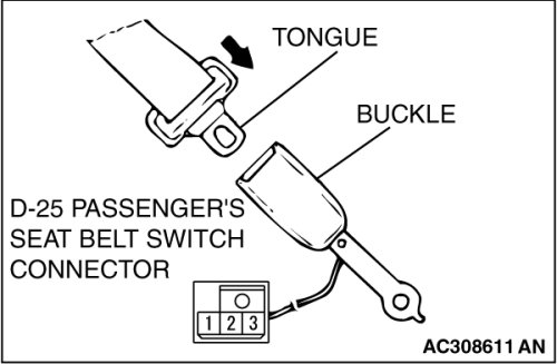 - Disconnect passenger's seat belt switch connector D-25.