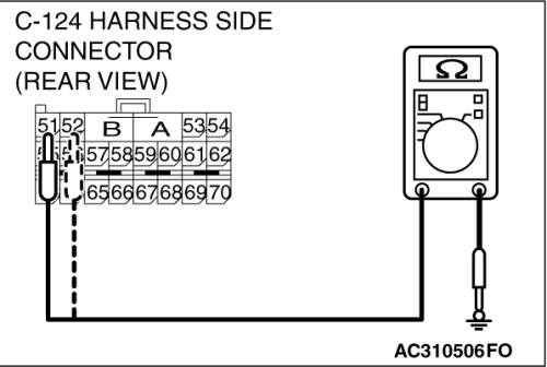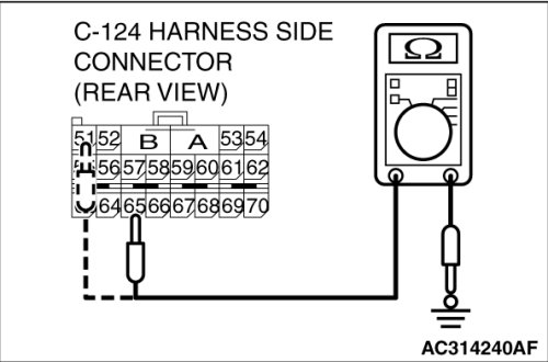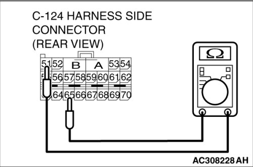 (2)Disconnect SRS-ECU connector C-124 and measure at the harness side (rear side).