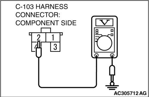 (2)Measure the power supply voltage between stoplight switch connector C-103 terminal 2 and ground.