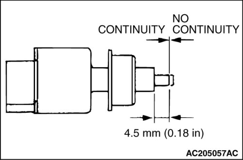(4)The stoplight switch is operating properly if the circuit is open between terminals 3 and 4 when the plunger is released, and if resistance value is less than 2 ohms between terminals 3 and 4 when the plunger is pushed in to a depth of within 4.5 mm (0.18 inch) from the outer case edge surface.