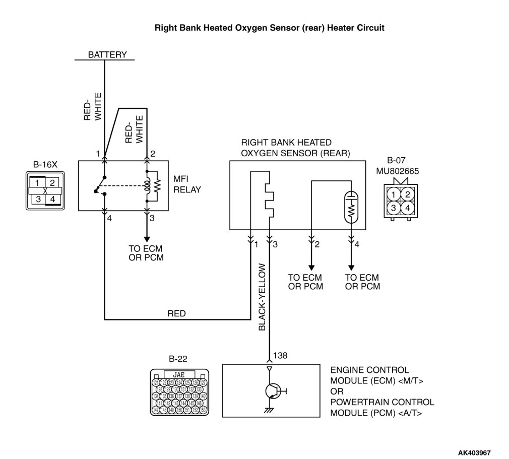- Power is supplied from the MFI relay (terminal No. 4) to the right bank heated oxygen sensor (rear) heater.