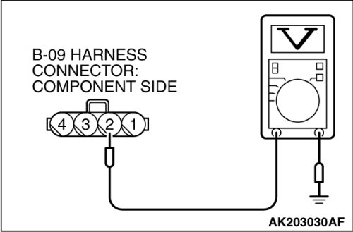 STEP 3. Measure the power supply voltage at mass airflow sensor harness side connector B-09.