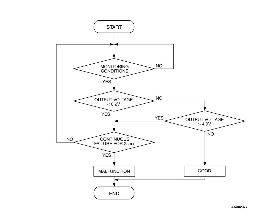 - The ECM [M/T] or the PCM [A/T] checks whether the voltage output by the mass airflow sensor while the engine is running is within a specified range.