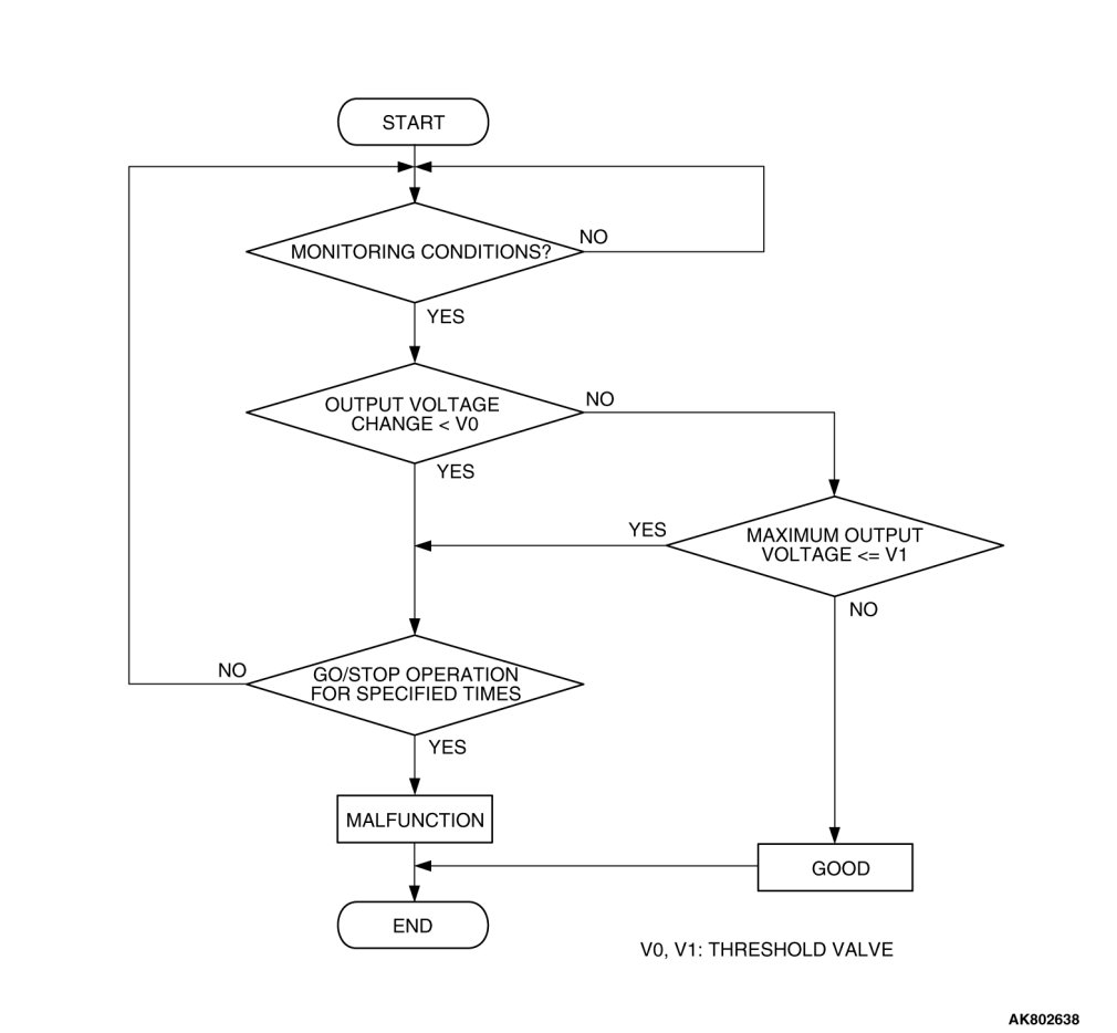 - The ECM [M/T] or the PCM [A/T] checks for the left bank heated oxygen sensor (rear) output voltage.