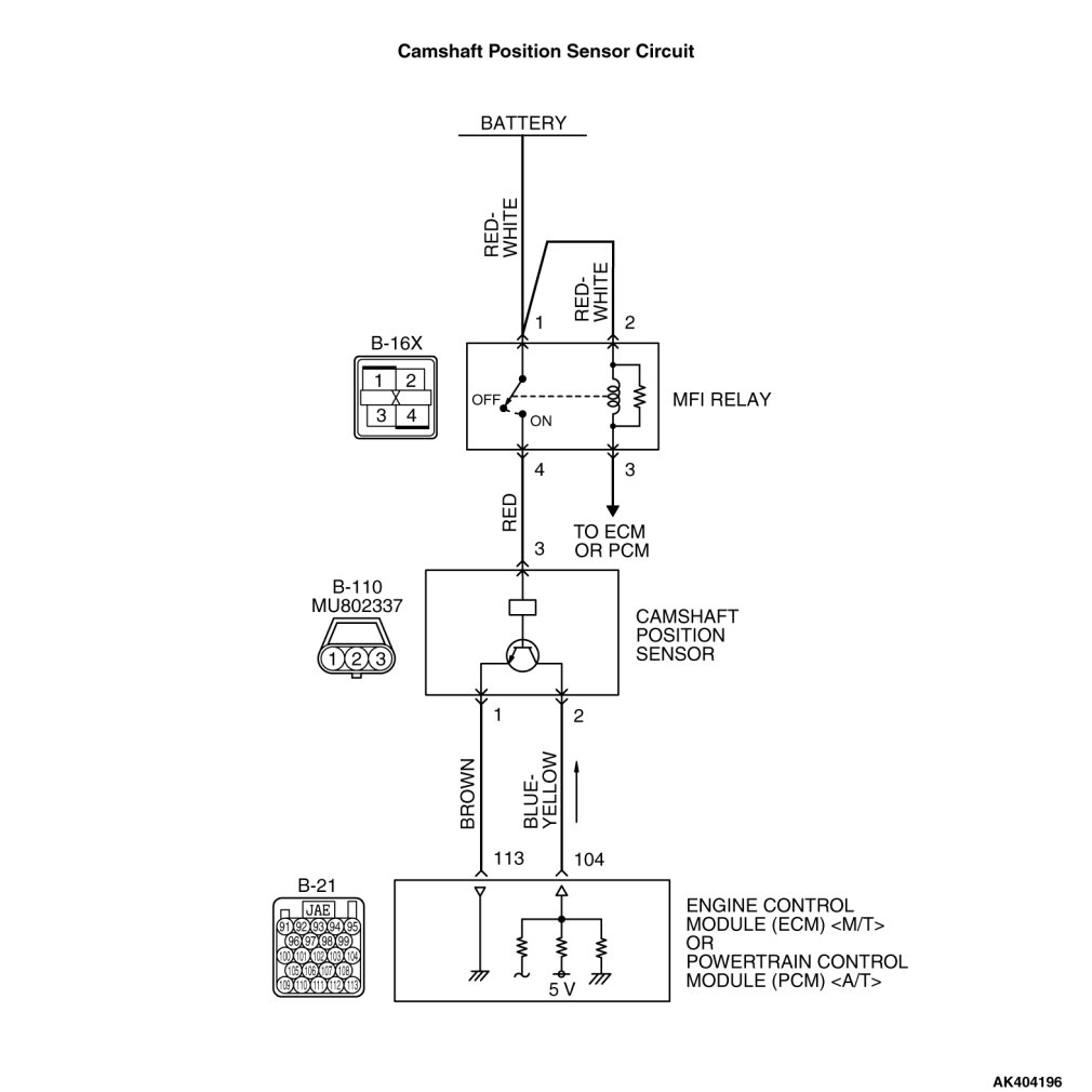 - The camshaft position sensor power is supplied from the MFI relay (terminal No. 4).
