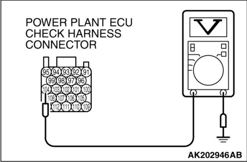 Connect the power plant ECU check harness special tool MB991923 between the separated connectors.