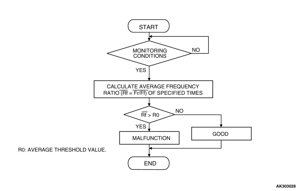 - When the right bank heated oxygen sensor (rear) signal frequency is divided by the right bank heated oxygen sensor (front) signal frequency, the average is more than 0.7.