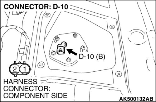 STEP 5. Check for open circuit and short circuit to ground between fuel level sensor (main) connector D-19 (terminal No. 2) and fuel level sensor (sub) connector D-10 (terminal No. 1).
