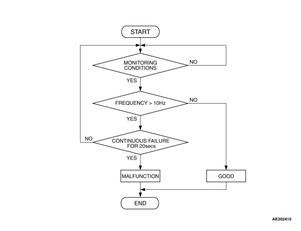 - The ON/OFF frequency of a power steering pressure switch is 10 Hz or more for 20 seconds.