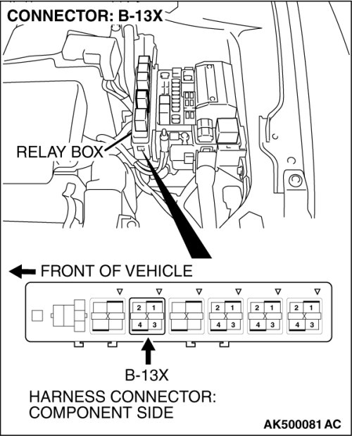 (1)Disconnect the connector B-13X and measure at the harness side.