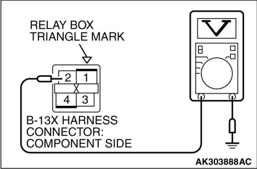 STEP 4. Measure the power supply voltage at throttle actuator control motor relay harness side connector B-13X.