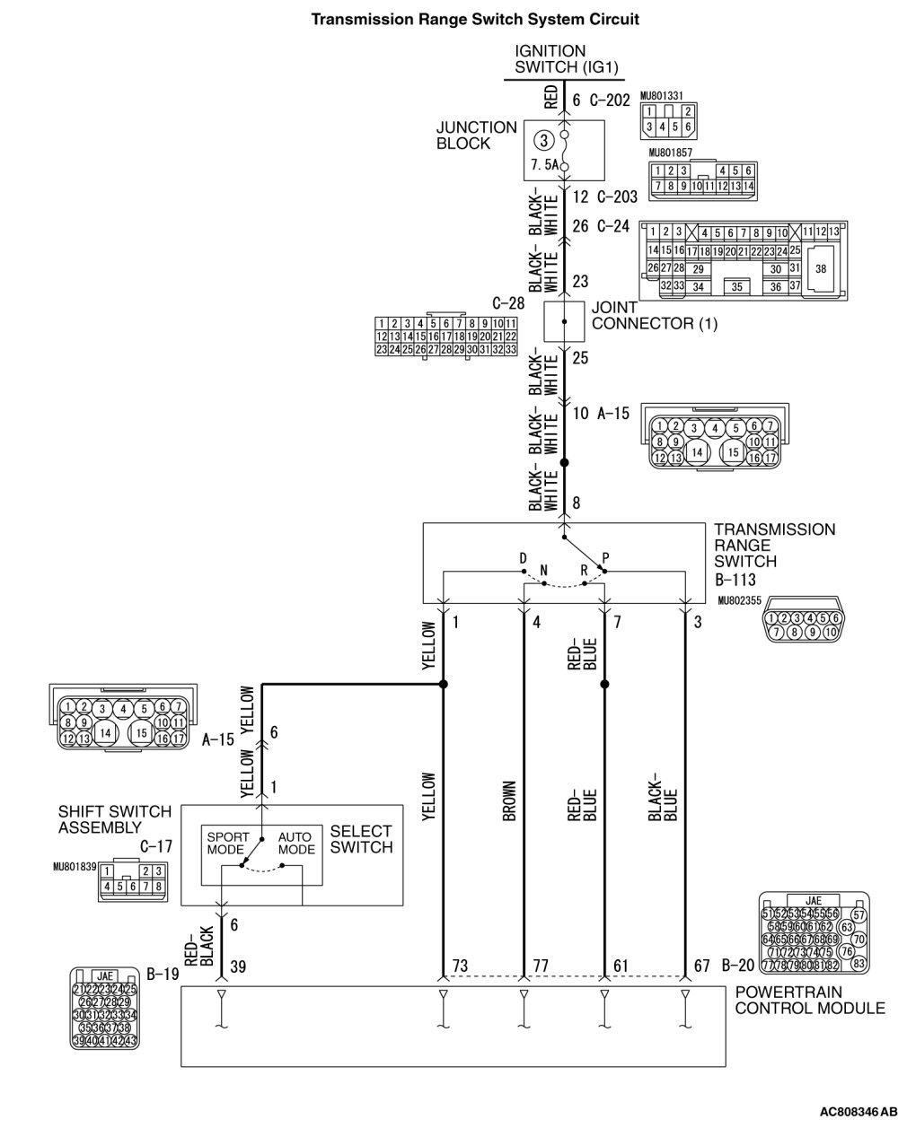 - Item 34: Transmission Range Switch.