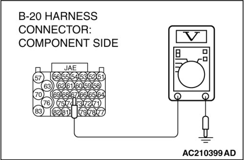STEP 8. Measure the transmission range switch output voltage at PCM connector B-20 by using check harness special tool MB991923.