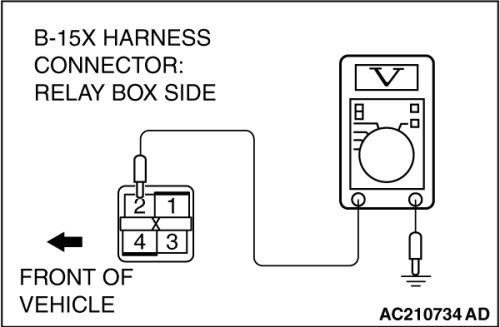 STEP 4. Measure the supply voltage at A/T control relay connector B-15X in the engine component relay box.