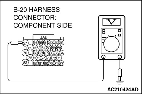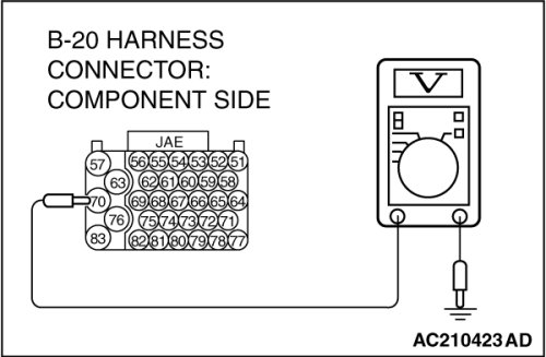 STEP 10. Measure the A/T control relay output voltage at PCM connector B-20 by using check harness special tool MB991923.