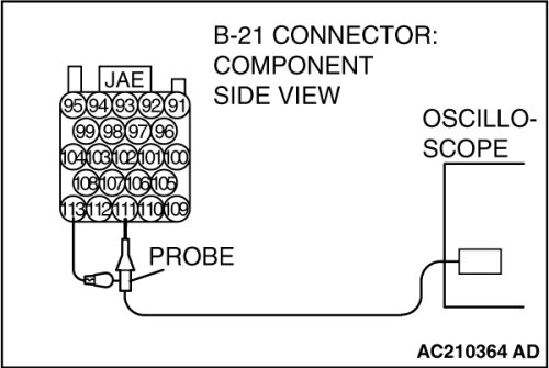 (3)Connect an oscilloscope probe to PCM connector B-21 terminal 111 and to 113.