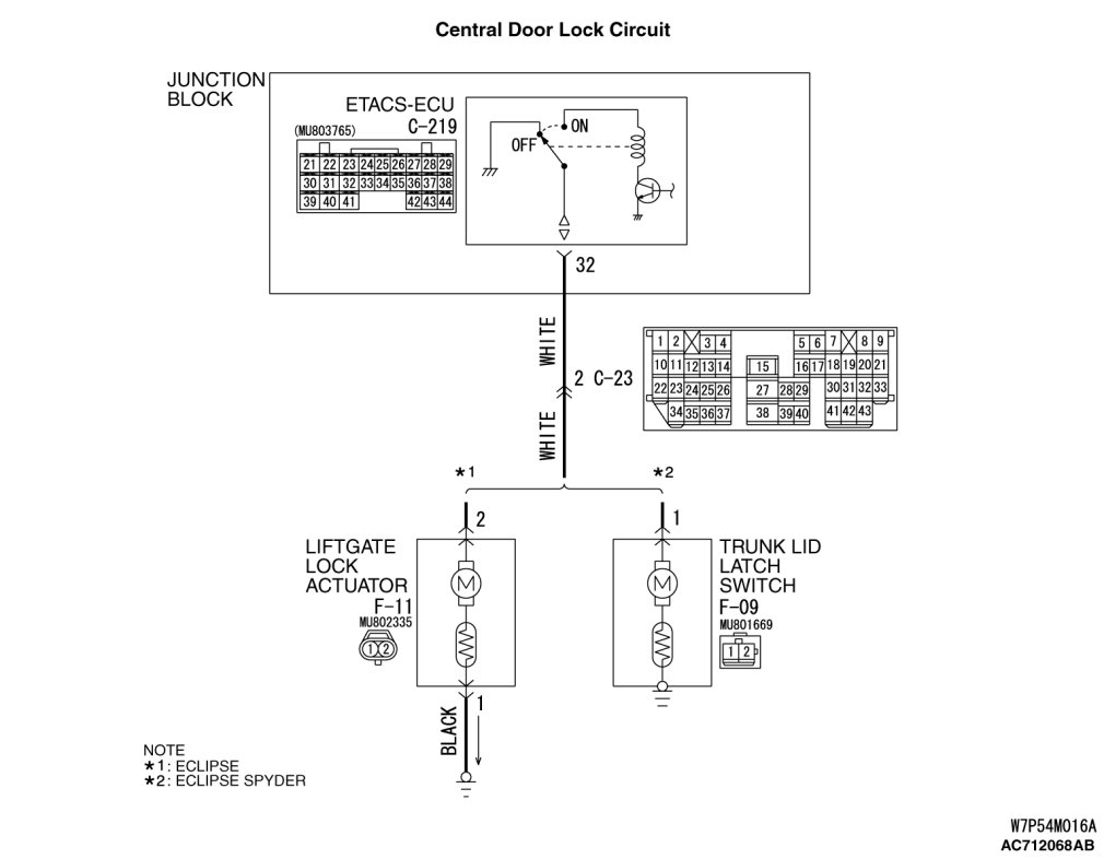 - The ETACS-ECU locks or unlocks all the doors by operating the central door lock relay (incorporated in the ECU) in response to input signals.