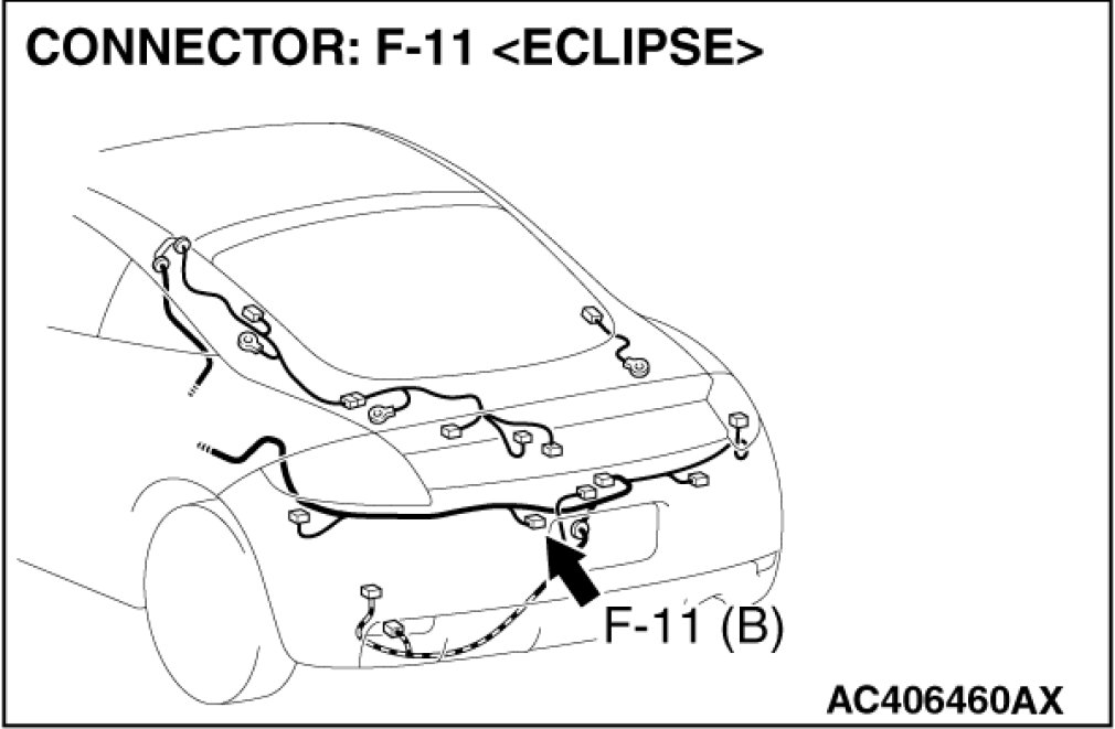 STEP 12. Check liftgate lock actuator connector F-11 for loose, corroded or damaged terminals, or terminals pushed back in the connector.