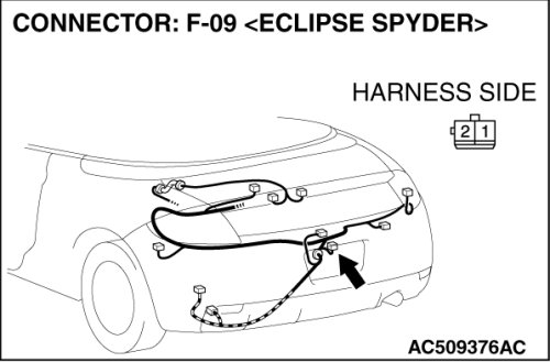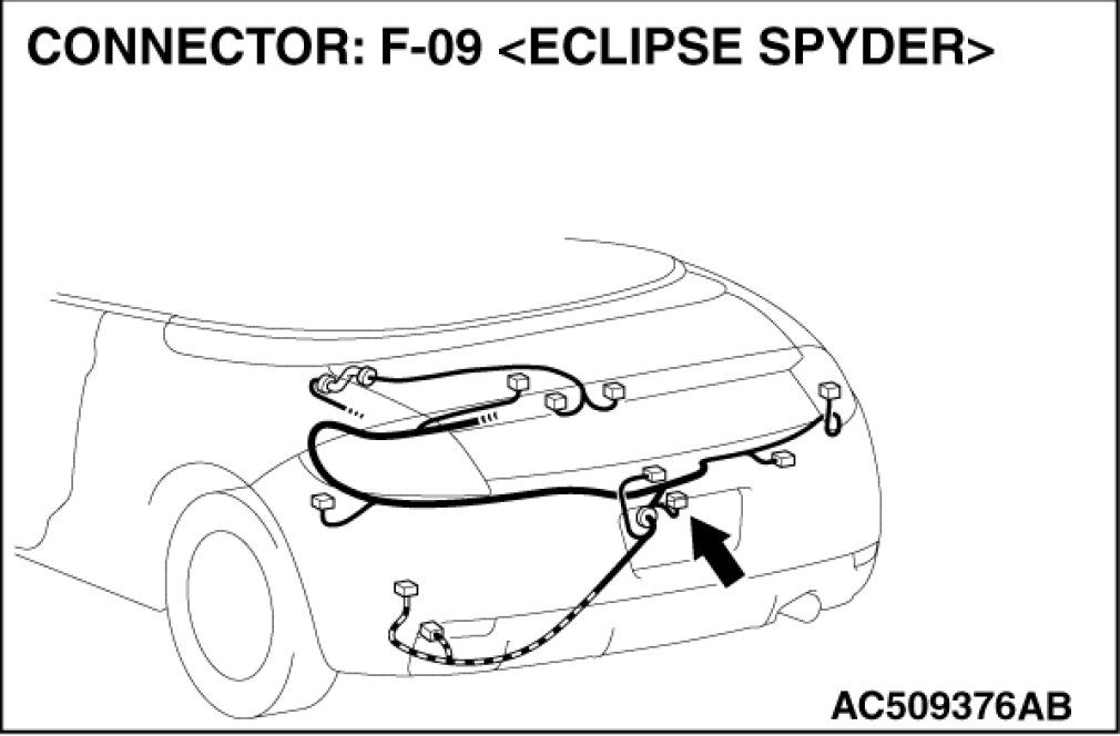 STEP 19. Check trunk lid latch switch connector F-09 for loose, corroded or damaged terminals, or terminals pushed back in the connector.