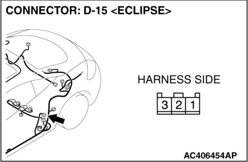 STEP 2. Check door switch (LH) connector D-15 for loose, corroded or damaged terminals, or terminals pushed back in the connector.