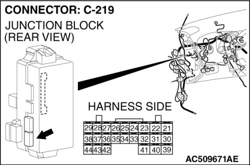 STEP 5. Check hood switch connector A-37 and ETACS-ECU connector C-219 for loose, corroded or damaged terminals, or terminals pushed back in the connector.