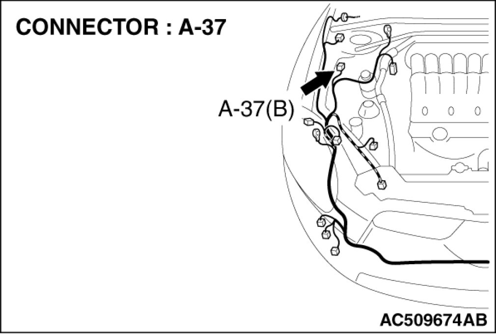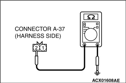 (1)Disconnect hood switch connector A-37 and measure the resistance available at the wiring harness side of the connector.