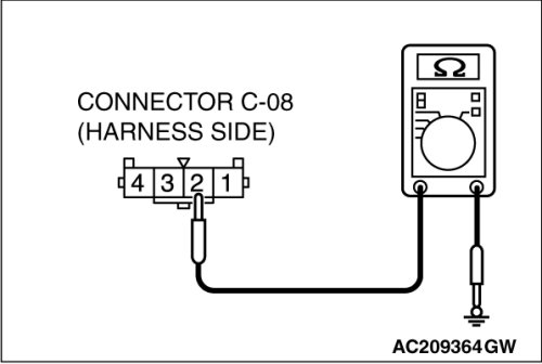 STEP 4. Check the wiring harness between hazard warning light switch connector C-08 (terminal 2) and ground.